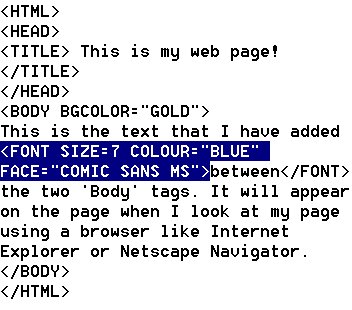 9. Place your cursor after the last word to be changed and type the closing 'Font' tag.