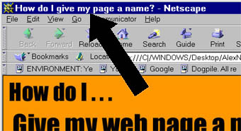 The web page name is NOT the file name OR the title of the contents. It is the name that you want to appear in the blue bar (at the top of the window) when the viewer looks at your page.